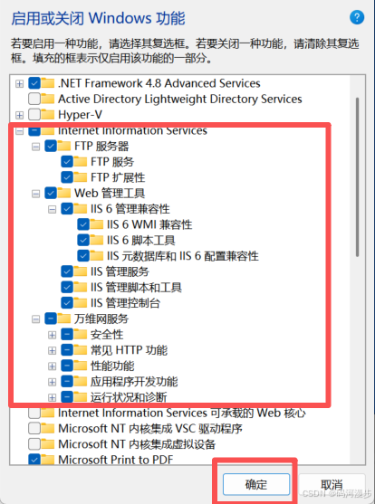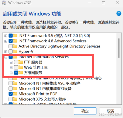 4、找到IIS这里,全部勾选上,有的要打开勾选