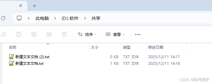 1、在另外一台电脑上,新建一个叫共享的文件夹,里边创建两个文件