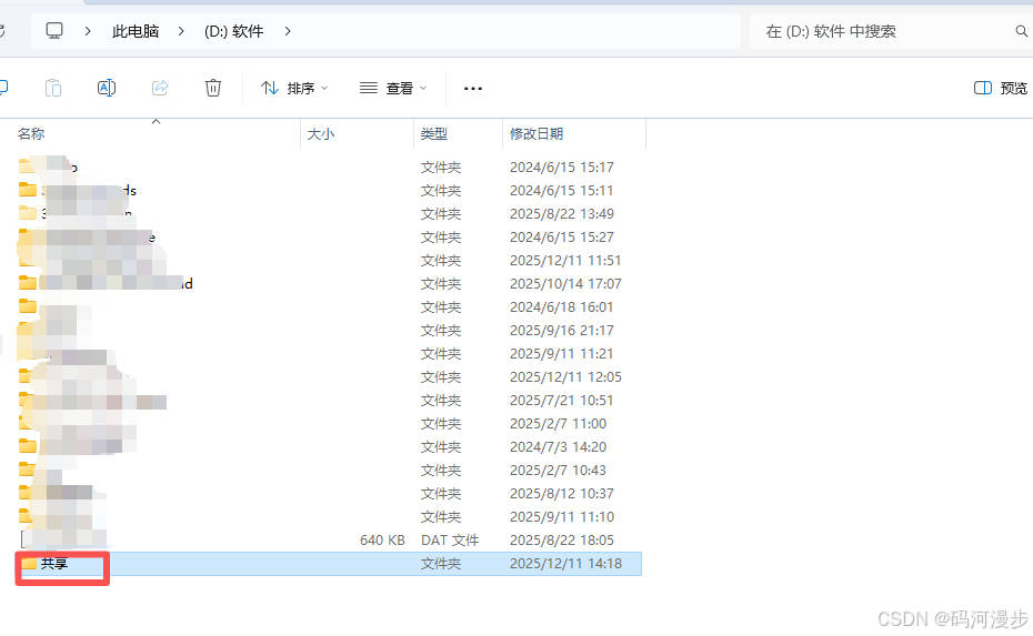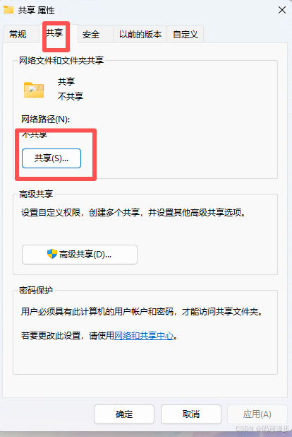 2、在共享这个文件夹上右键,选择属性,切换到共享选项卡,点击共享