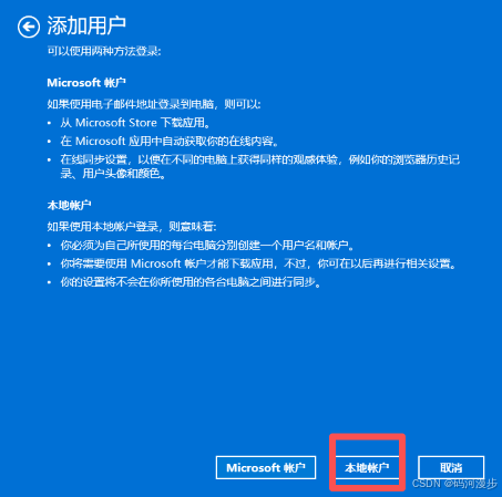 4、选择本地账户