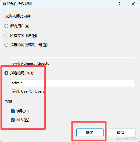 10、这里输入我们之前设置的用户名,选择权限