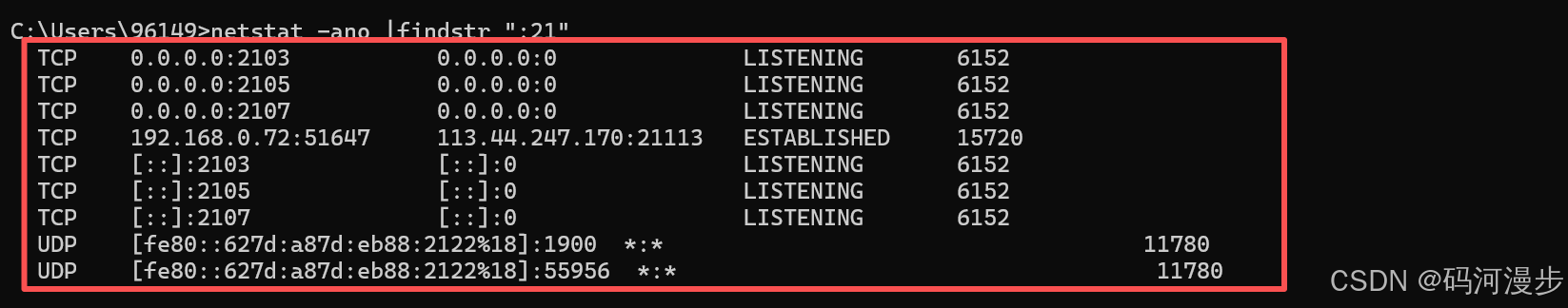 netstat -ano |findstr ":21"