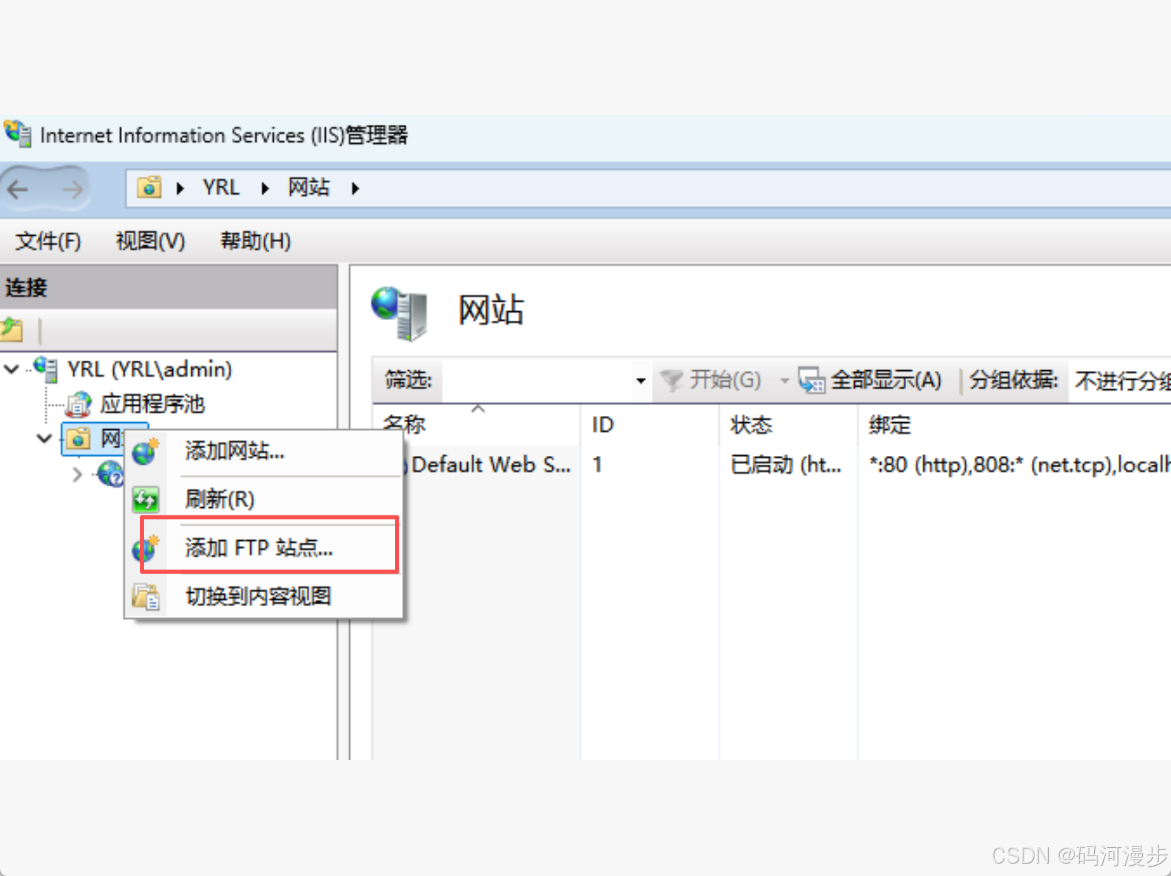 2、右键,添加FTP站点
