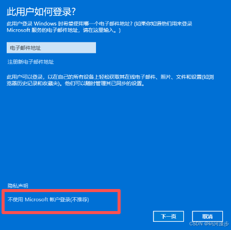 3、选择不使用Microsoft账户登录