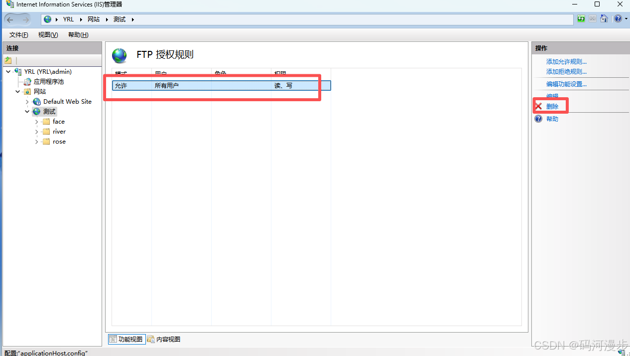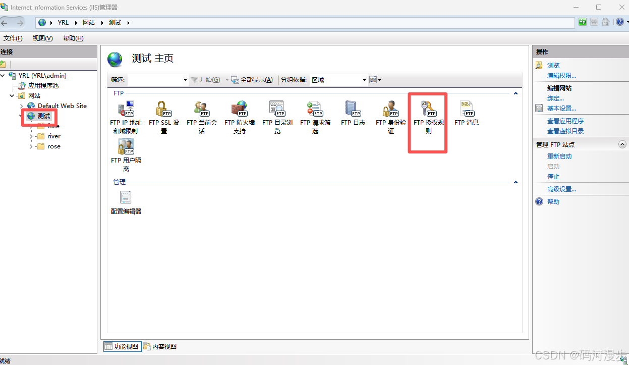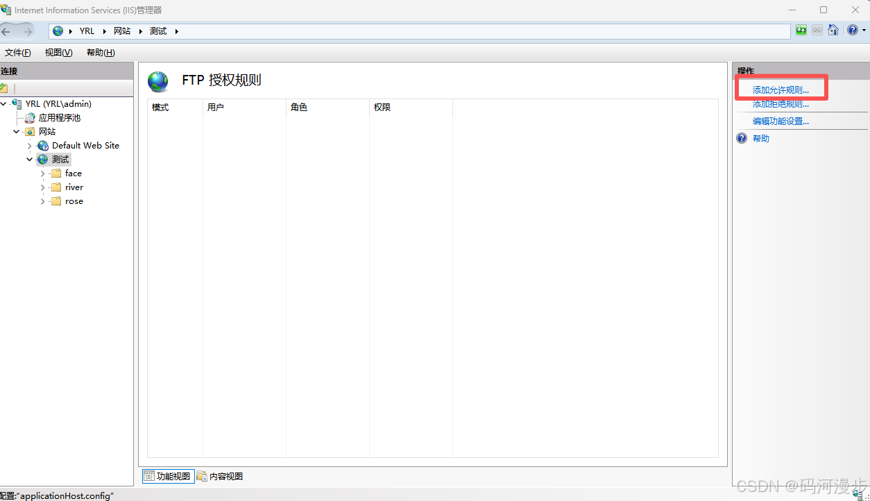 7、回到IIS这里,进入FTP授权规则这里