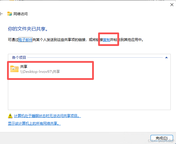 4、等一会他就共享完成了,点击复制