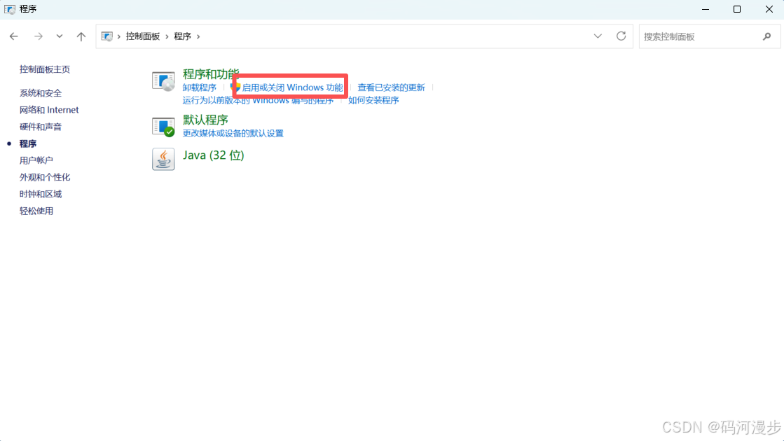 3、打开启用或关闭Windows功能