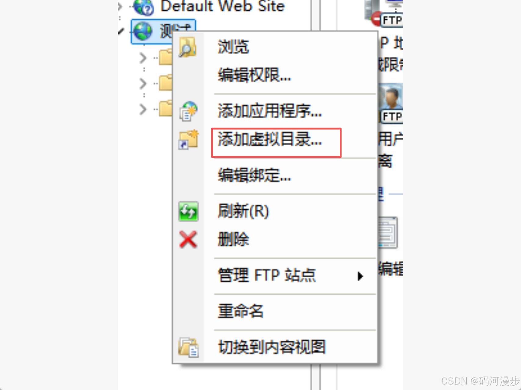9、在FTP站点这里,右键,添加虚拟目录