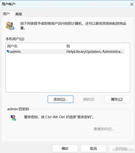 2、可以看到当前的用户,就是你登录计算机的时候的用户名,可以点击添加,添加一个新的用户名