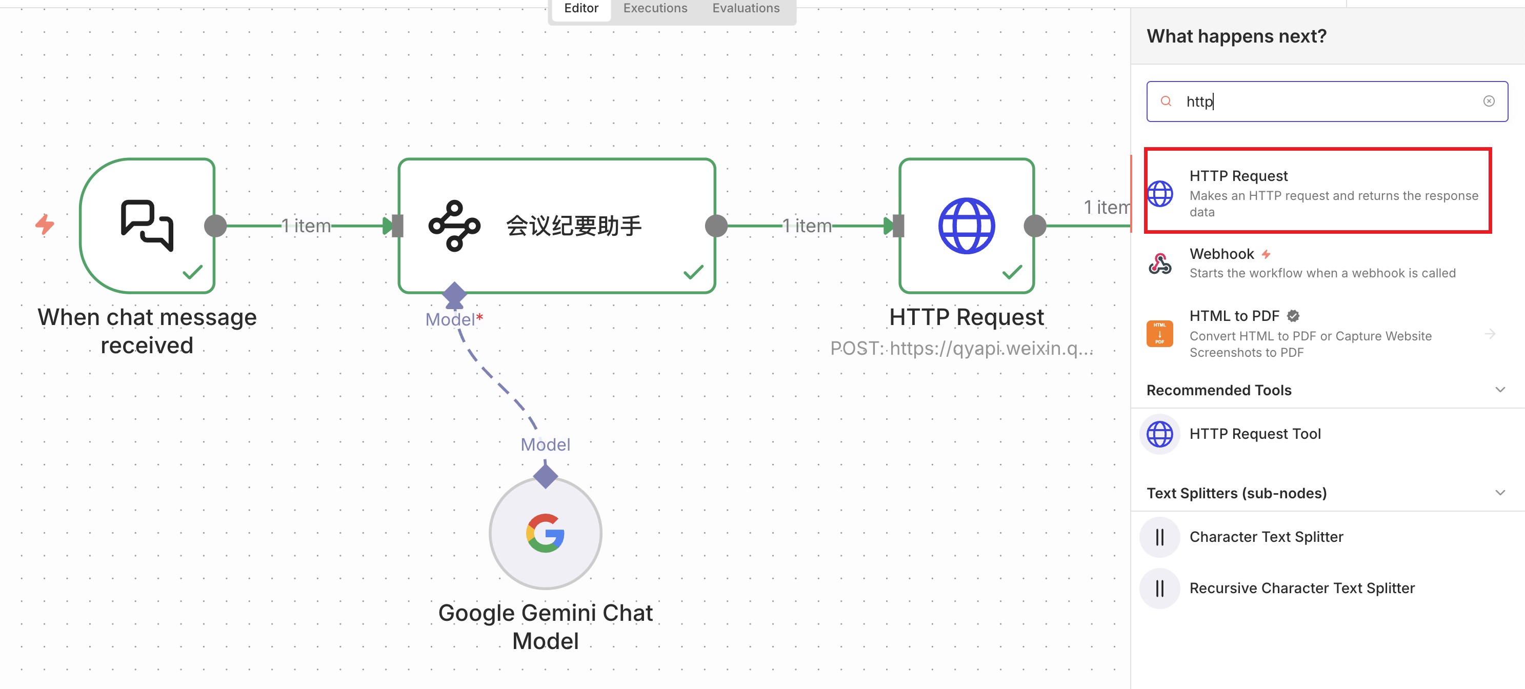 这个链接就是"收件箱",谁把会议对话发到这个链接,工作流就启动