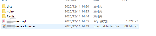 └── xxx-admin.jar # Spring Boot 后端应用(Java jar 包)
