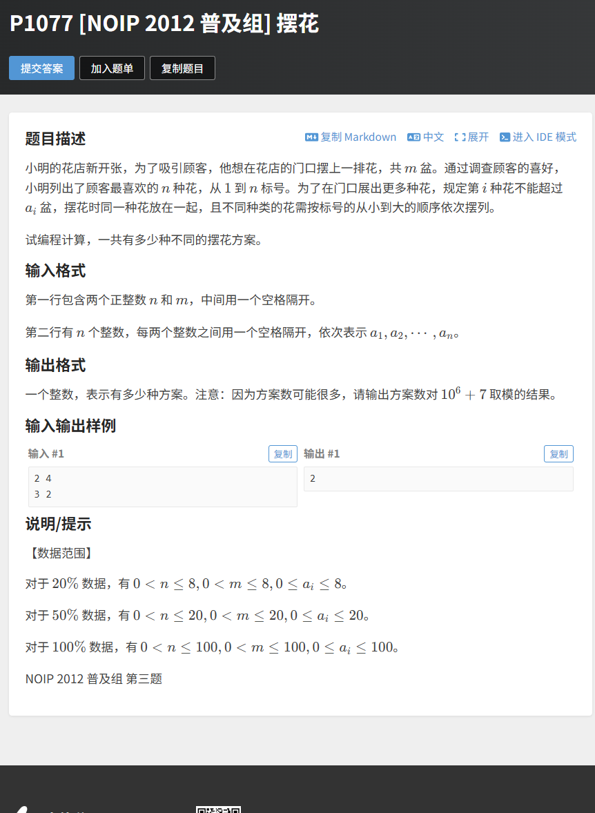 [2.5 实战案例:洛谷 P1077 摆花](#2.5 实战案例:洛谷 P1077 摆花)