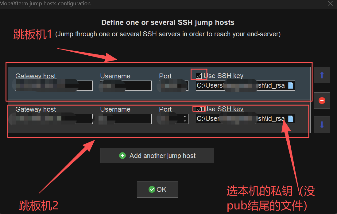 本机(win or linux)需要ssh 通过 跳板机服务器1-> 跳板机服务器2 ->目标服务器