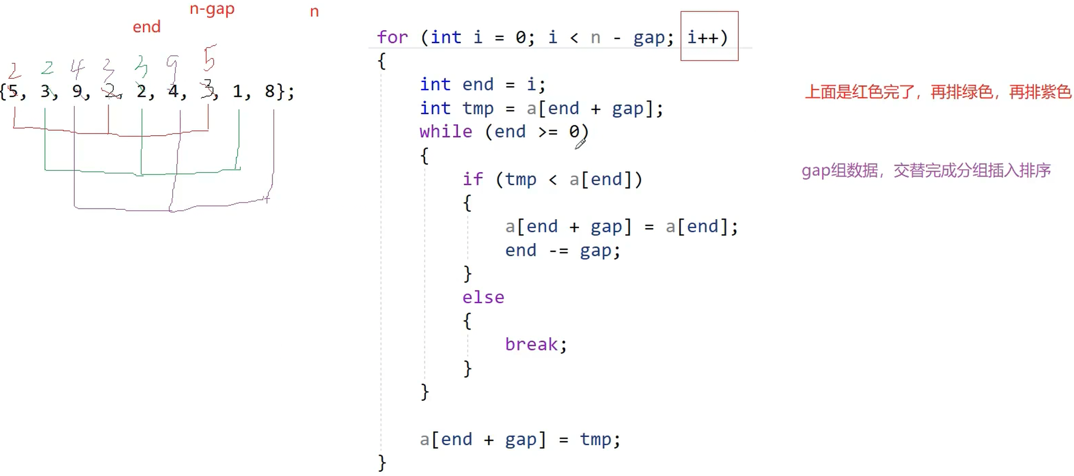 这里我们的gap / 3 + 1更好,这里就不进行证明了(时间复杂度O(n ^ 1.3) 大致比n * log n略大)