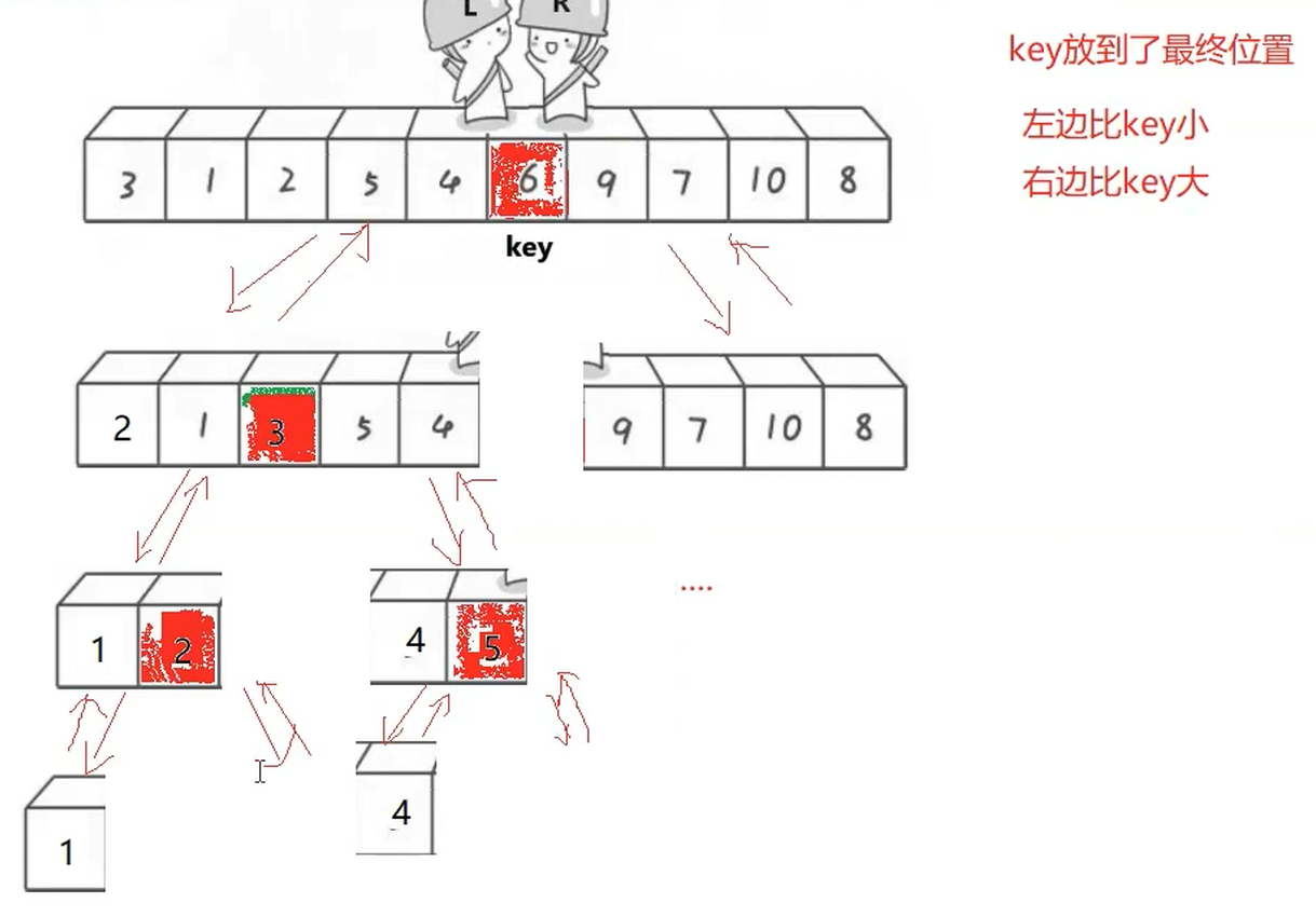 然后我们再排序 左子树 和 右子树 ,等拍好了就全部都排序好了