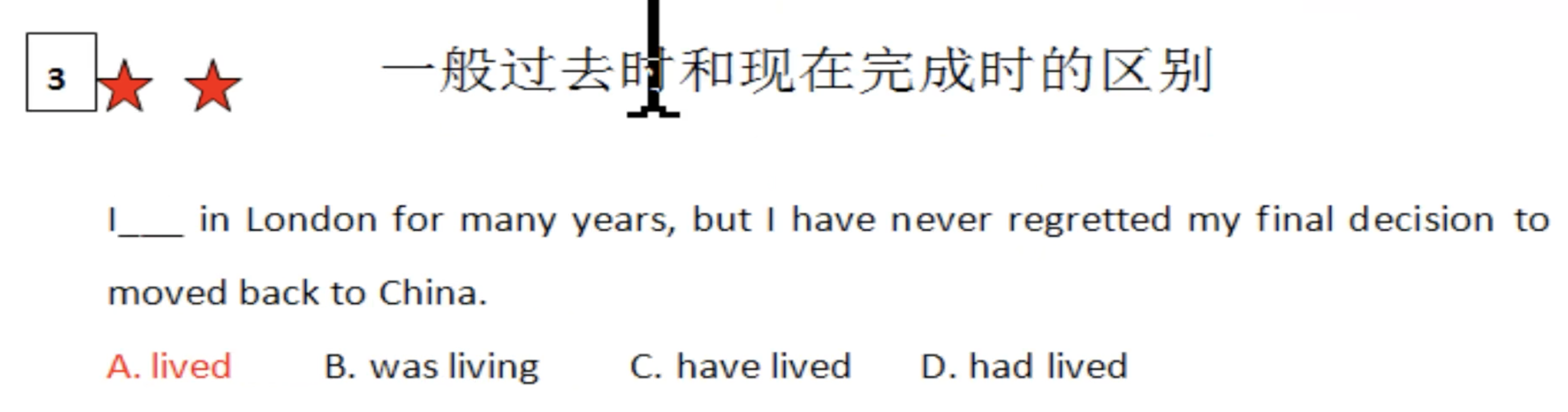 解析:因为我在伦敦的生活已经结束了,这三年的伦敦生活已经塌缩成了一个时间点。所以用一般过去时。