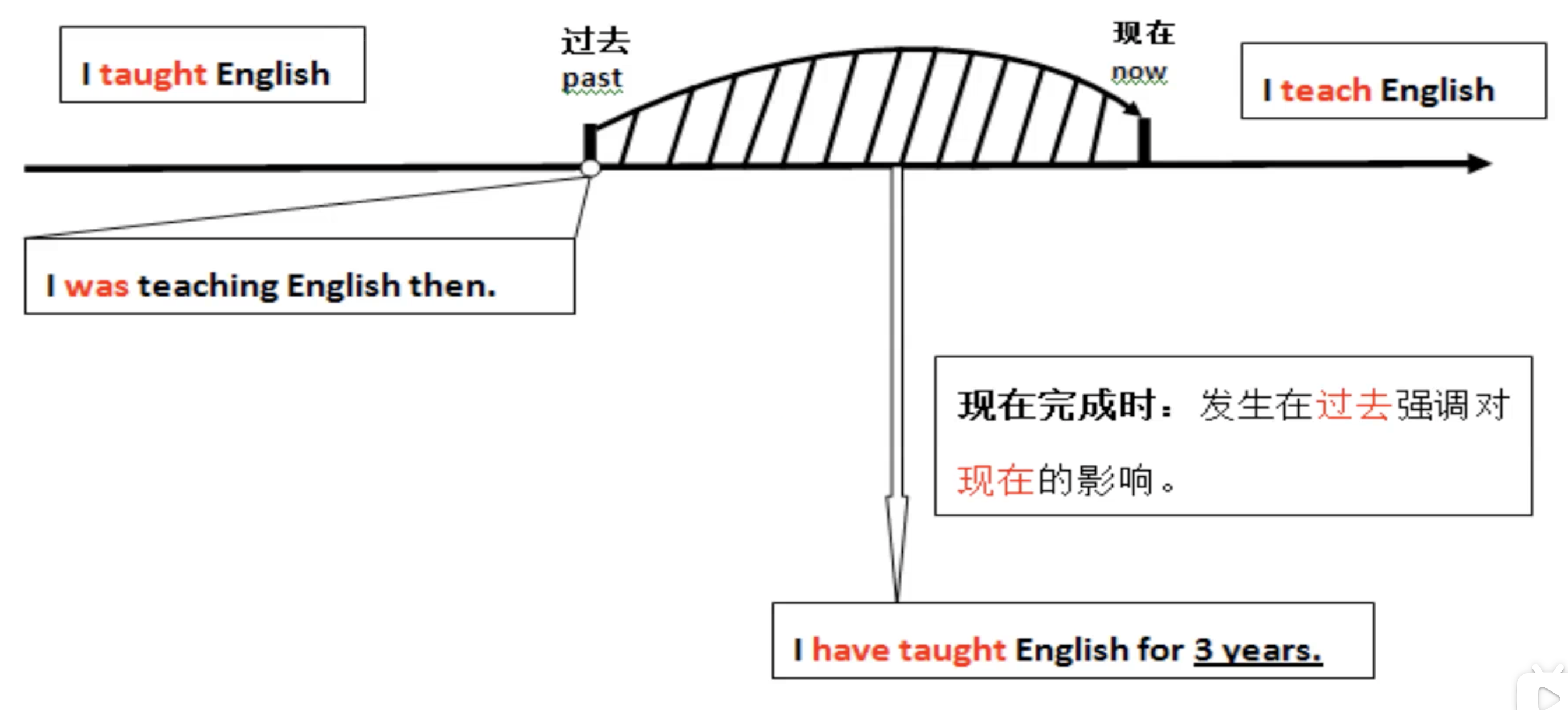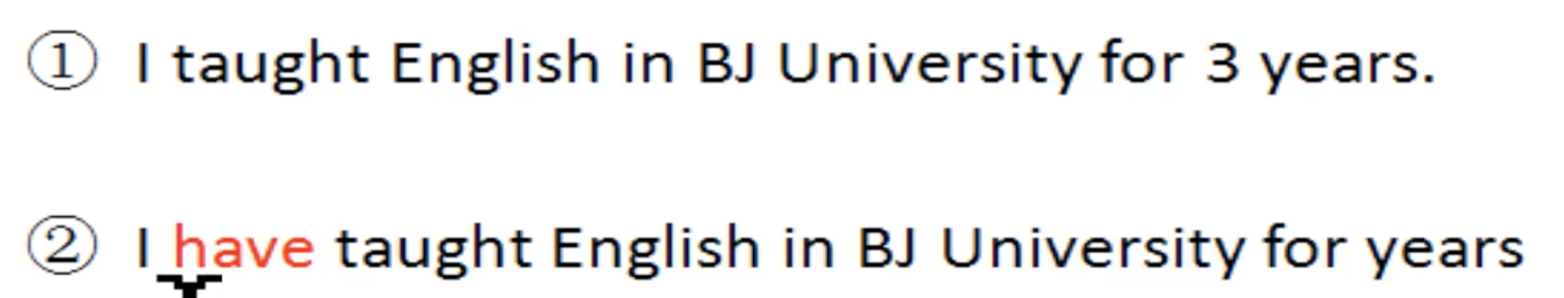 (2)两句话的意思是,"我在北大已经教了3年英语。" 言外之意,就是我现在还是北大的老师。