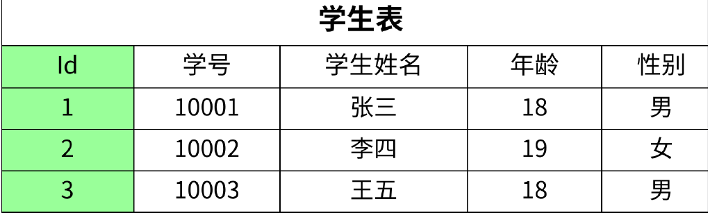 - 因为要描述的是学生信息,并且在表中定义了ID,ID可以明确的标识每条学生信息