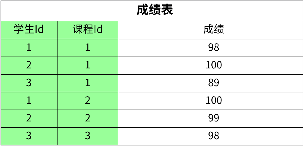 - 这张表是使用学号+课程名定义复合索引唯一标识一个学生某门课程的乘积,这也是这张表的主要作用