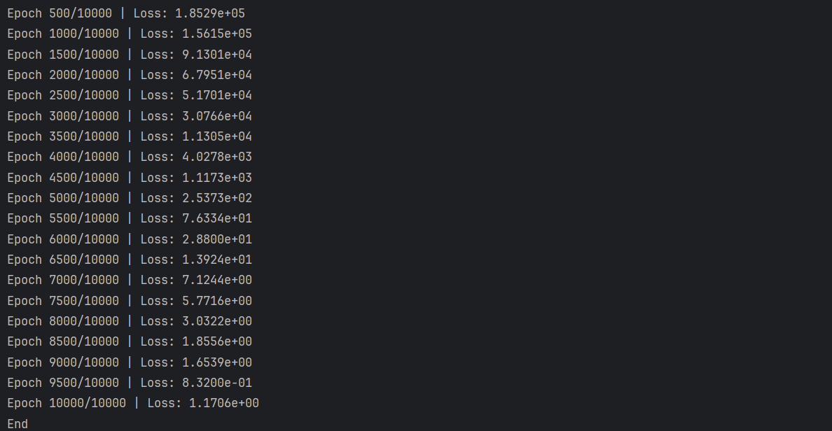 print(f"Epoch {epoch + 1}/{num_epochs} | Loss: {loss.item():.4e}")