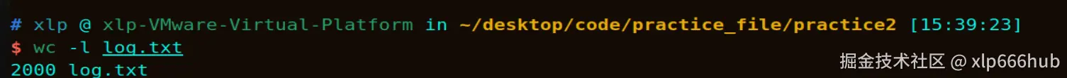 再来查看 log.txt 文件的行数,发现也是2000行。这足以说明一条日志都没有丢失。