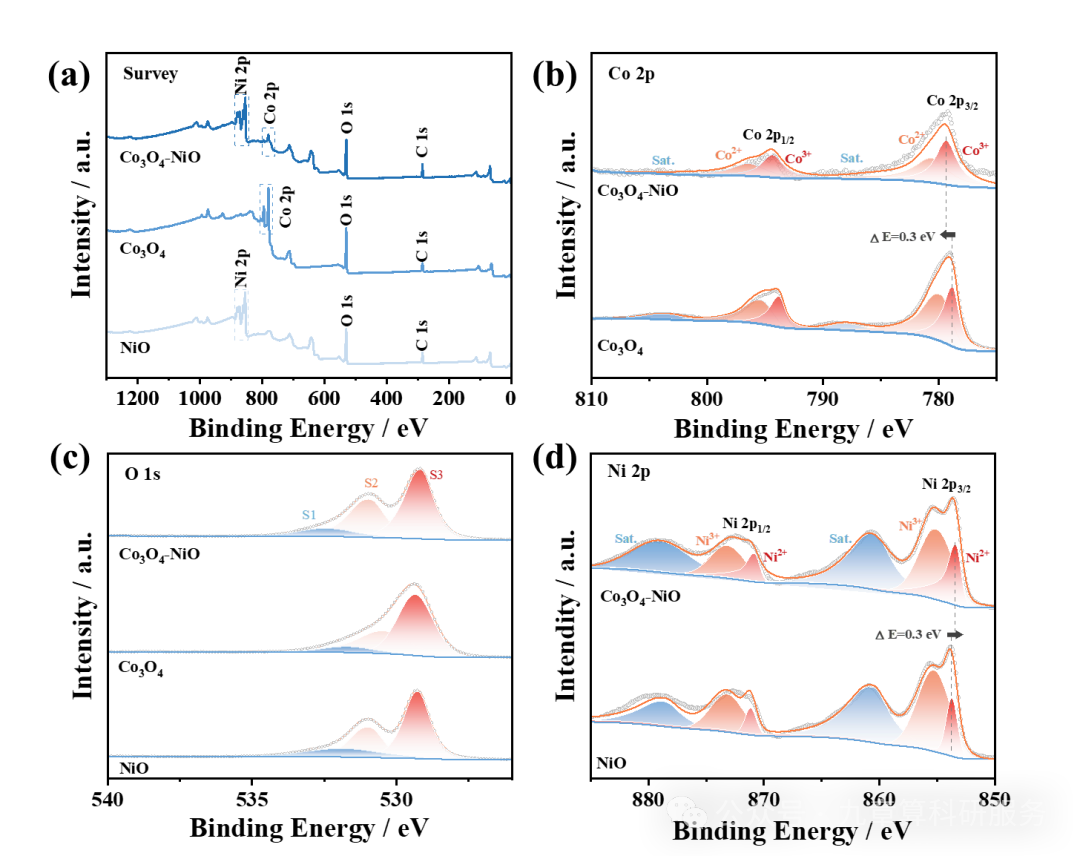 图3 . Co3O4-NiO-30电极的XPS表征结果
