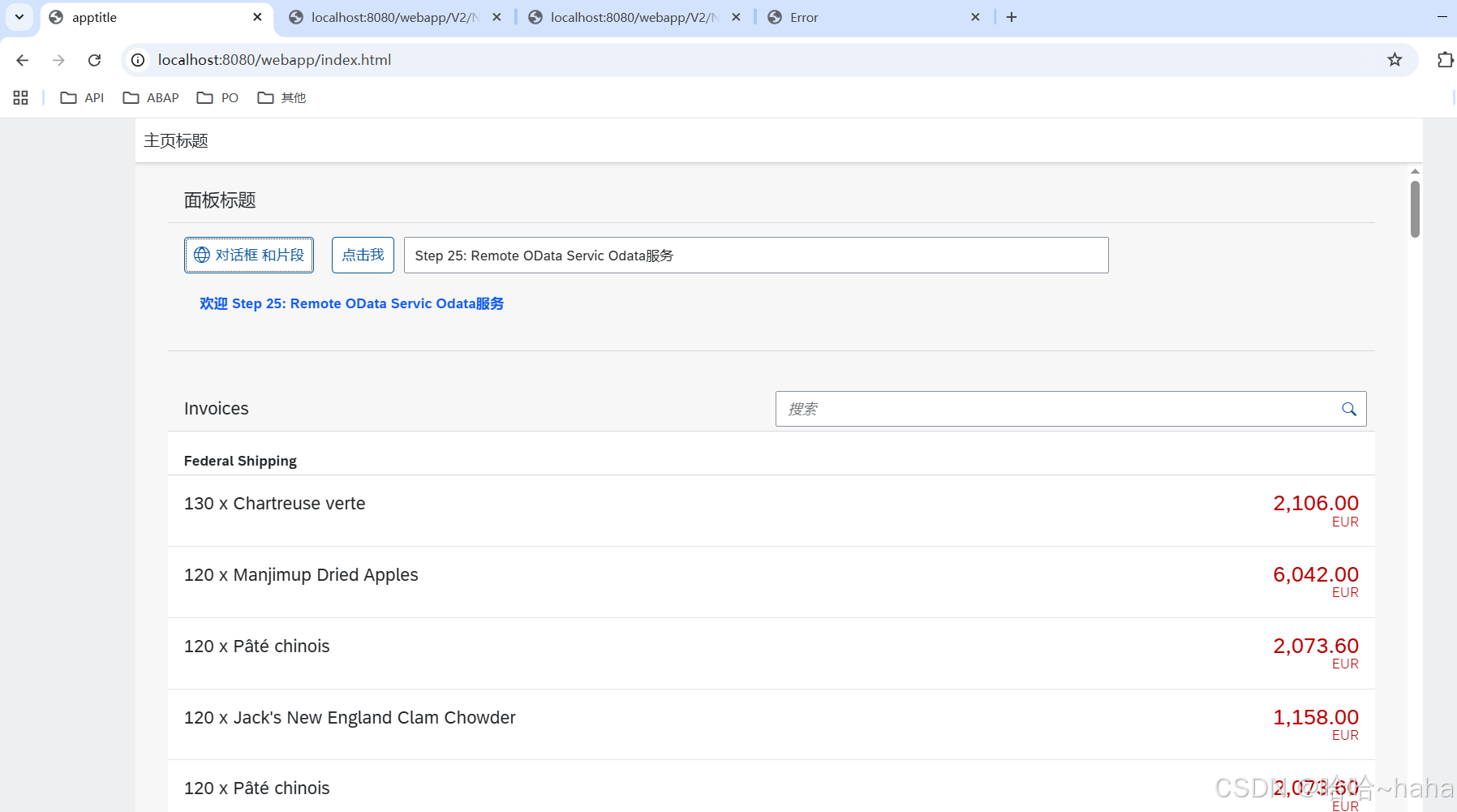 新建文件夹25,复制练习UI5_Walkthrough_Step 24: Sorting and Grouping 排序和分组 文件夹下内容,可删除之前文件中webapp\Invoices.json文件,