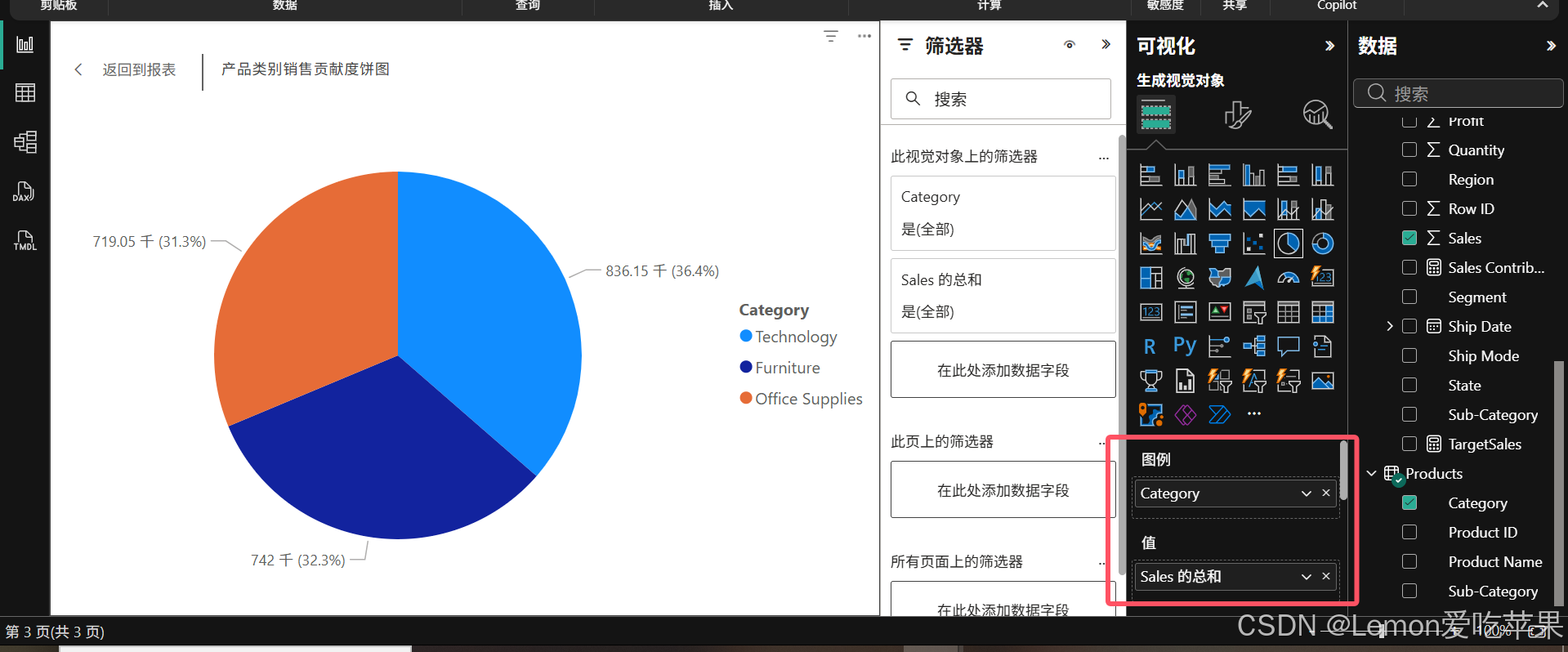 - 产品类别销售贡献度饼图
