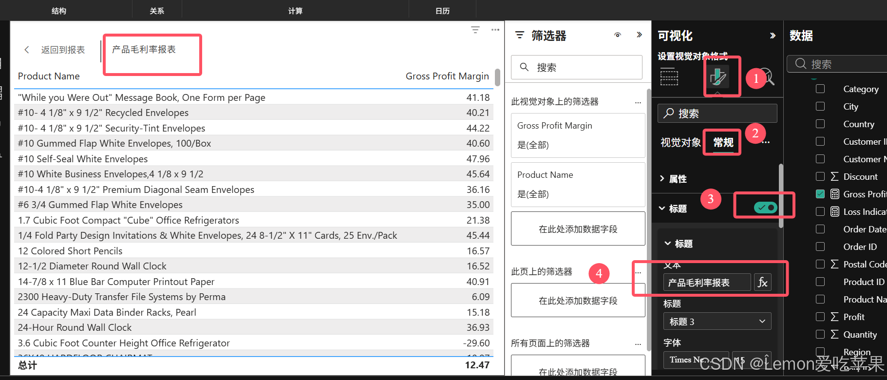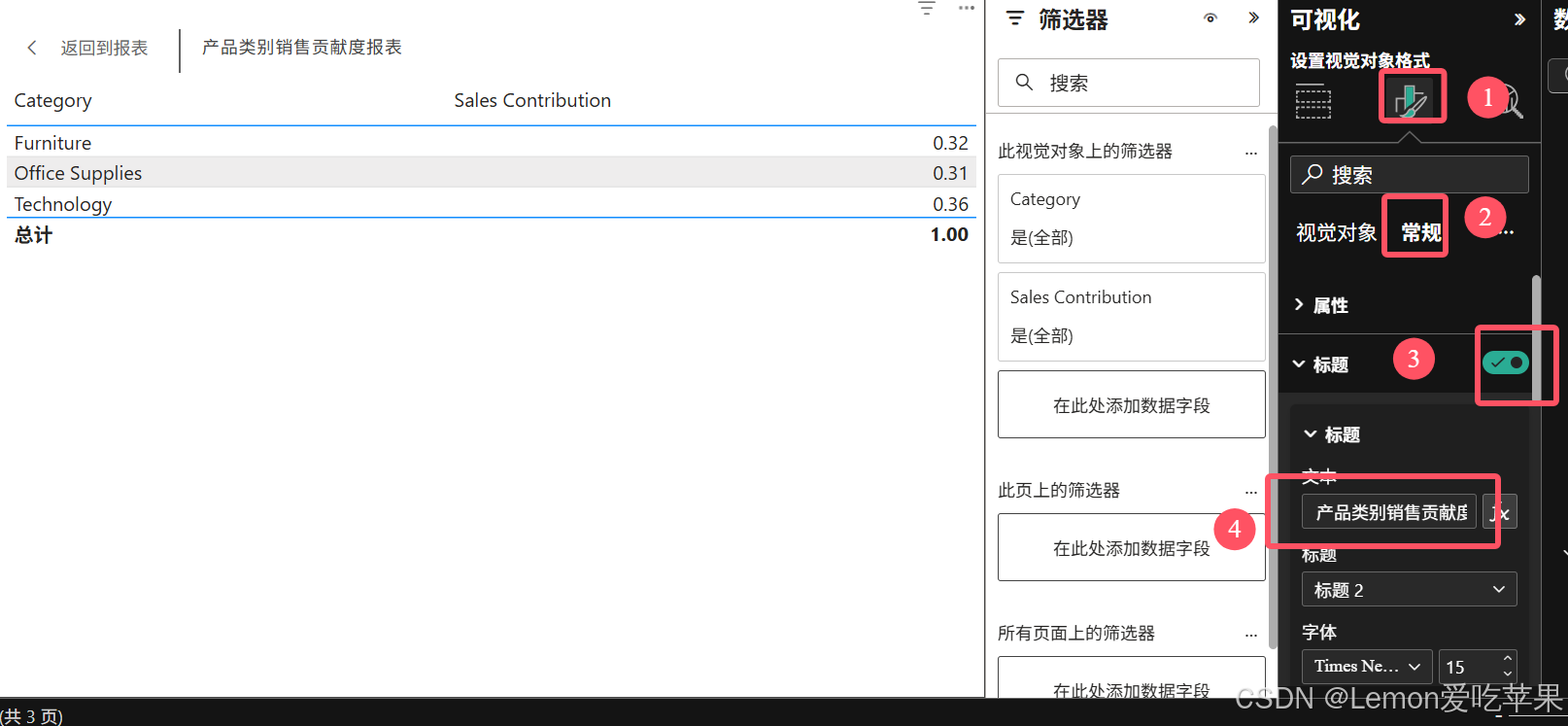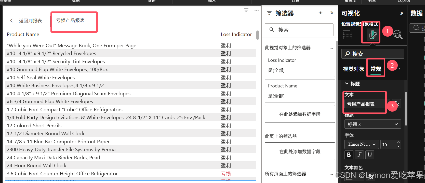 同时可以对报表设置标题、字号大小、字体样式等等,这里就靠大家自己的审美啦,我就是设置了一下标题。