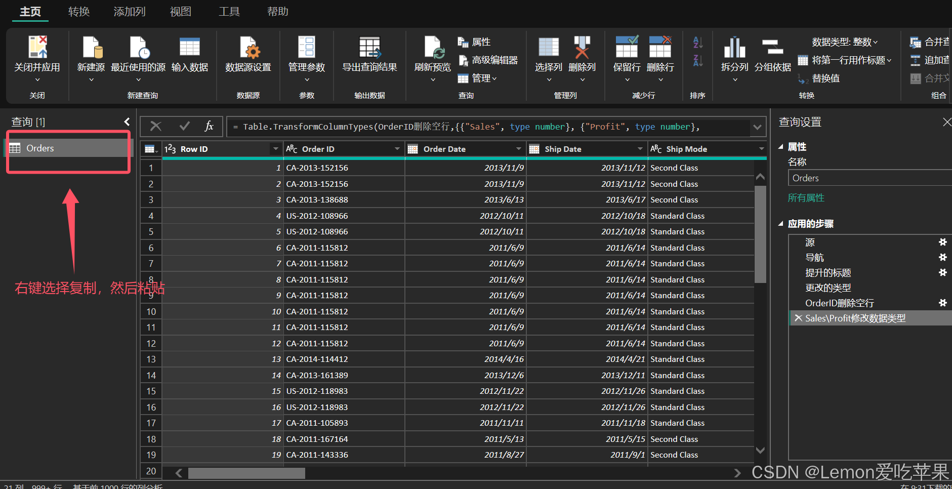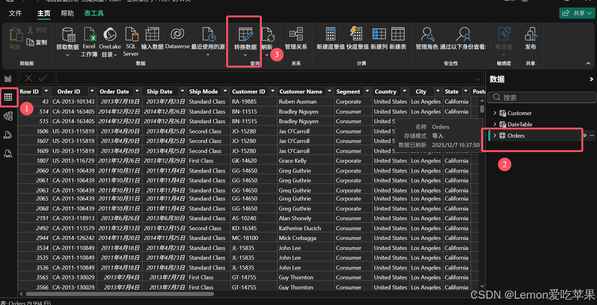 首先,让 Orders 表从 Desktop 模式进入 Power Query 模式,方便我们从 Orders 表生成产品表