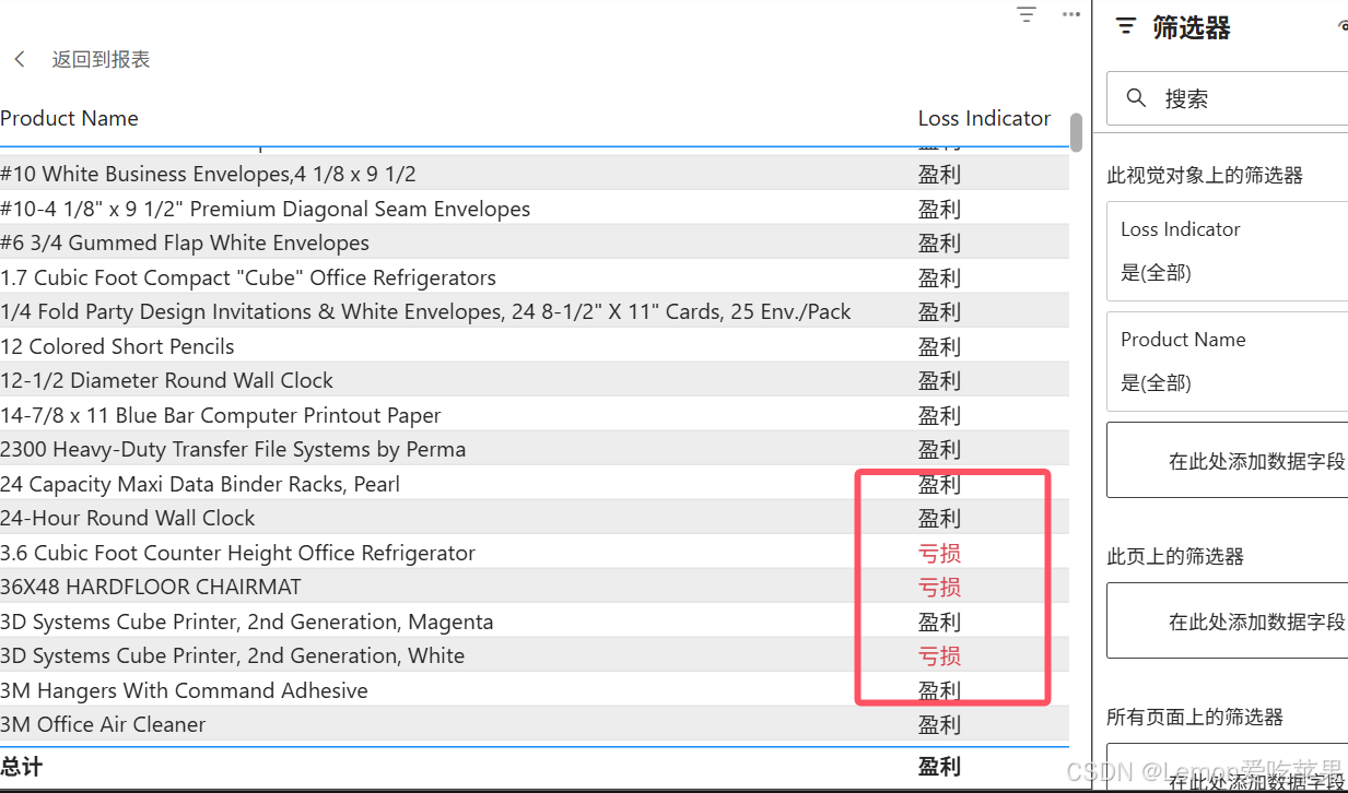 - 亏损产品报表(条件格式标红)