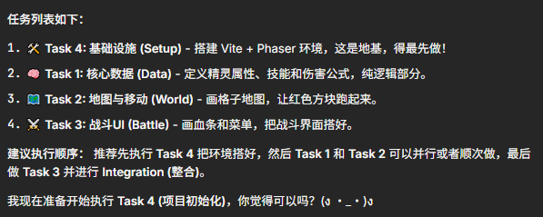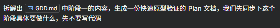 🤔 接着,直接让 Trae 按照这个 GDD 文档来干活吗?可以,但我倾向于再 "拆 ",先做 "可行性的快速验证 ",而不是直接一股脑干到头,这样省 Token ,效率更佳 ,有不对的可以 快速调整: