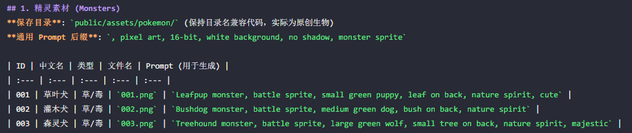 😆 接着用我们上面训练的模型来生成 "宝可梦 " 和 "道具 ",生图 Prompt 可以让 Trae 生成一个素材清单: