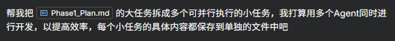 😏 不够,我还要玩更 "**骚" **的 "多Agent并行 ",把 Trae 的效率拉爆,写 Prompt 把 大任务 拆成多个 "可并行执行的小任务 ",然后还是得生成 "文档":