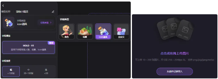 训练类型选 "icon道具 ",训练强度选 "低 ",然后点击 上传图片: