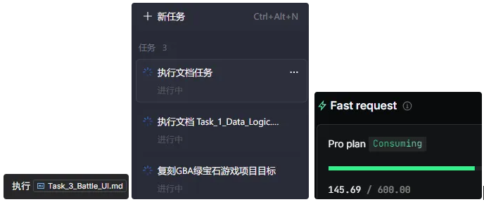 接着就是点击左上角的 "+ 新任务 ",然后在每个 Agent 里写不同的 Prompt:"执行xxx.md":