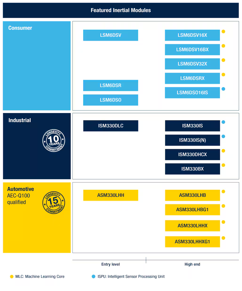 意法半导体的iNEMO产品组合包括惯性测量模块、具有机器学习内核的模块和智能传感器处理单元。