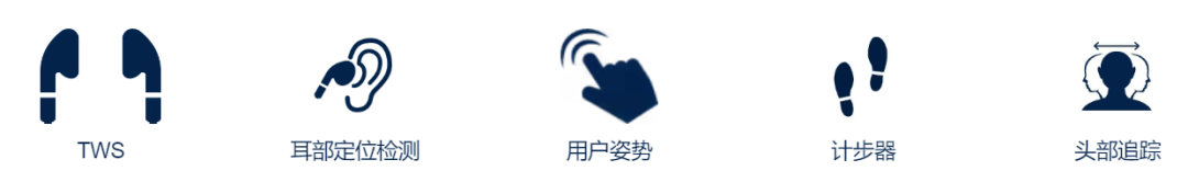 IMU集成了一个音频加速度计来实现骨传导检测,一个3轴加速度计和一个3轴陀螺仪来实现用户界面和交互。