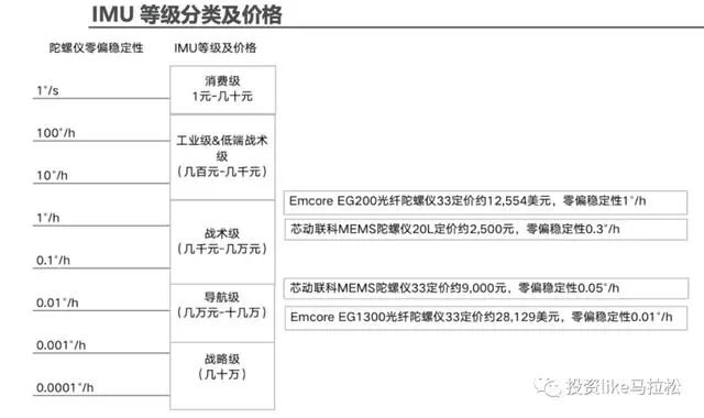 IMU根据其性能和精度分为不同等级,如战略级、导航级、战术级和消费级 ,对应的价格也相差较大,消费级的IMU,则主要应用于消费电子的智能手机、TWS耳机、游戏手柄、消费无人机、扫地机器人等产品,上,价格几十元以内;战术级的IMU主要应用于高端领域,如航空航天、无人系统、自动驾驶和我们关注的人形机器人等产品上。