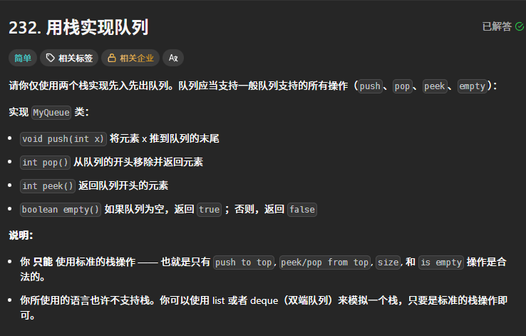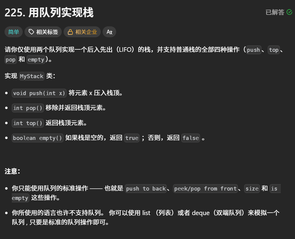 python里栈和队列似乎都没有具体的实现(collections.deque之外),这里更多的是想清楚思路做题,期待