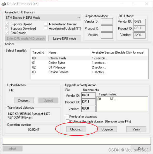 在Dfuse软件中选择dfu固件: