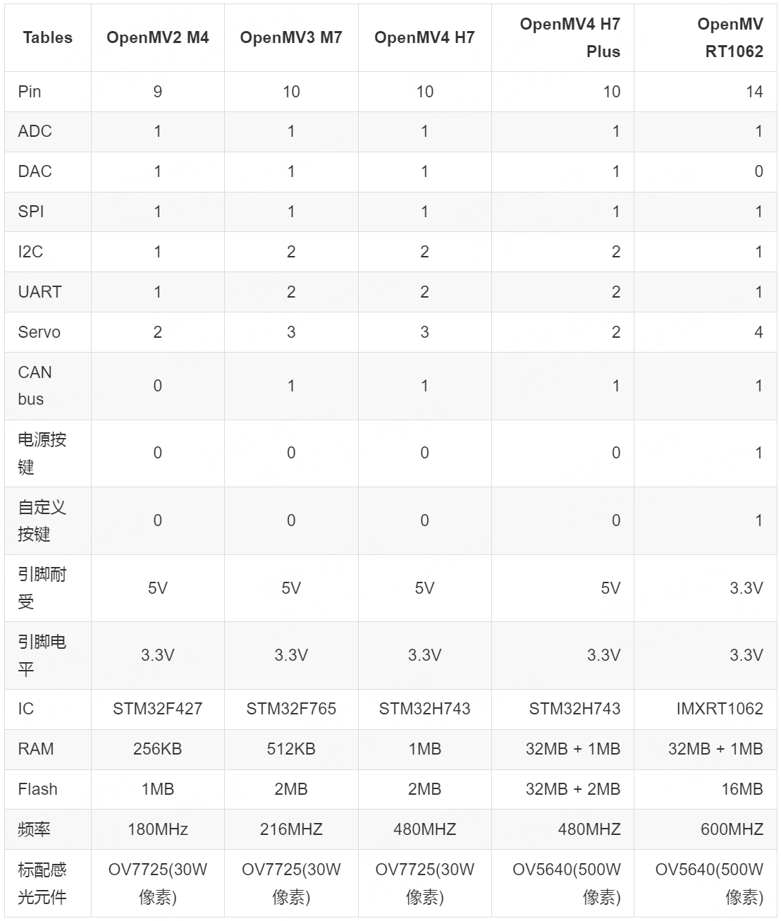 最大可支持分辨率:OpenMV2 320x240;OpenMV3 640x480;OpenMV4 752x480(MT9V034全局快门模组);OpenMV4 Plus 或 OpenMV RT1062 2592x1944.