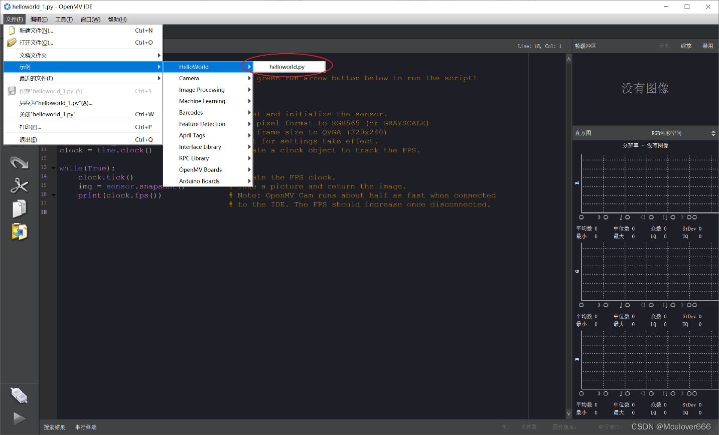 在专门的OpenMV IDE上开发,从官网下载安装即可。使用MicroPython语言进行开发。