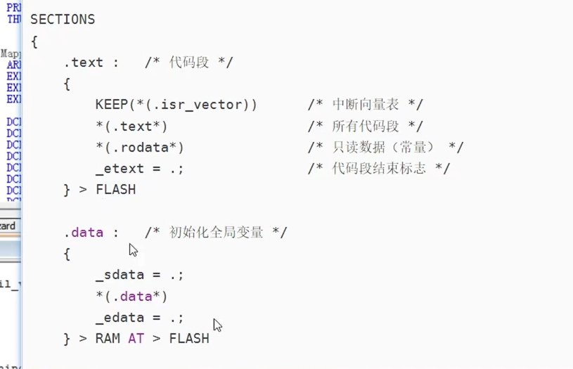 初始化逻辑:系统自动将 BSS 段对应的 SRAM 区域清零,无需从 Flash 搬运数据,节省存储资源。