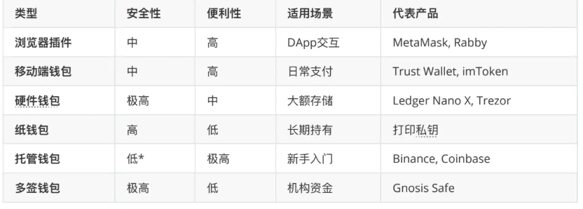 *注:托管钱包的安全性取决于服务商,用户无控制权