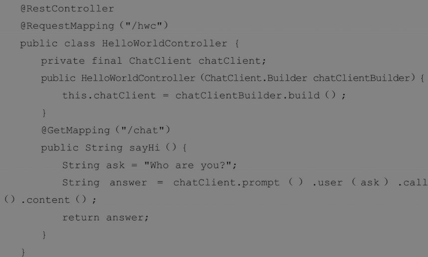 步骤三,创建Controller并利用ChatClient通过链式调用实现对话功能