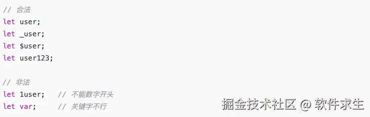 小精灵说:"我们 JS 魔法城的居民都靠标识符来辨认身份。所以,如果身份证不合格,城卫兵一律不放行。"