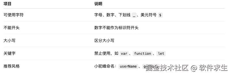 精灵告诉我:在 JS 里,每个变量、函数、类,其实都像城里的居民,都需要一张合法的"身份证",这就是 标识符(Identifier) 。