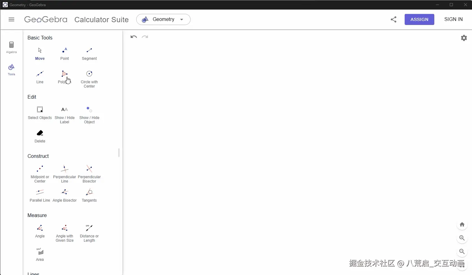 当你用"多边形工具"创建一个多边形时,GeoGebra 首先做的不是画边,而是定义点。比如我们重新打开一个GGB界面,然后用多边形工具创建一个多边形: