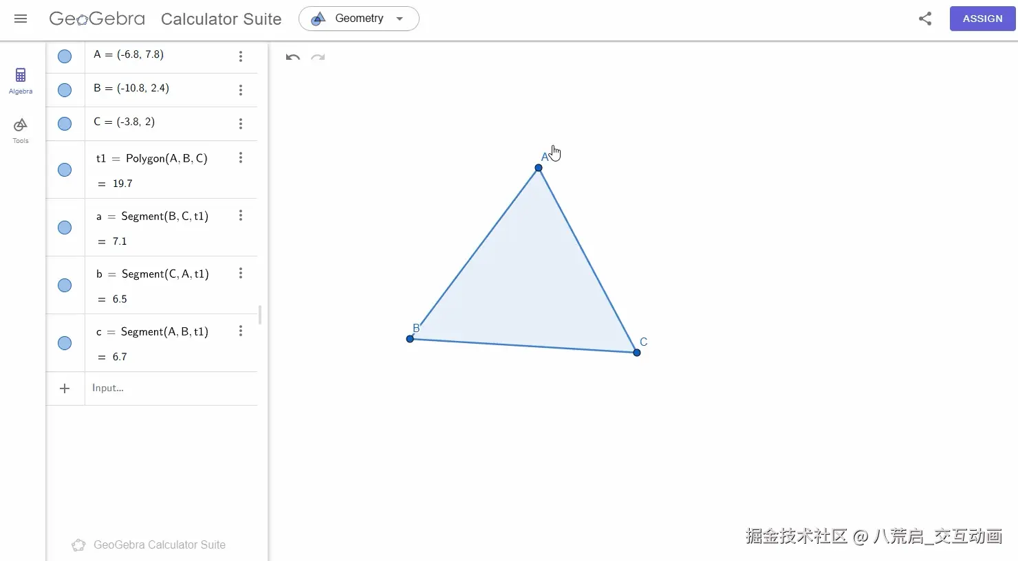 GeoGebra 的强大之处在于:代数不是事后计算,而是实时反馈。